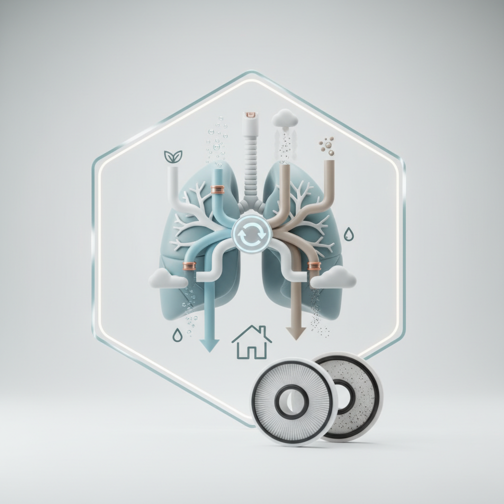 Ste se kdaj vprašali, kakšen zrak v resnici dihamo v svojih varnih domovih? Številne znanstvene študije neizpodbitno kažejo, da je lahko zrak v slabo prezračevanih zaprtih prostorih pogosto celo do petkrat bolj onesnažen kot zunanji mestni zrak. Ob nezadostnem prezračevanju pride do nevarnih visokih koncentracij ogljikovega dioksida (CO2), hlapnih organskih spojin iz pohištva in čistil ter kopičenja prahu. Vse to pri ljudeh dokazano povzroča kronično utrujenost, jutranjo zaspanost, nadležne glavobole, padec koncentracije in celo razdražljivost. Vgrajeni večstopenjski filtri v kakovostnem rekuperacijskem sistemu temeljito prečiščujejo zunanji zrak, še preden ta vstopi v dom. To je še posebej dobrodošlo za kronične alergike in astmatike, saj sodoben sistem z lahkoto zadrži zunanji cvetni prah, nevarne prašne delce, izpušne pline in druge alergene. Poleg tega nenehno, počasno dovajanje zraka, ki je izredno bogato s kisikom, dokazano izboljšuje kakovost nočnega spanca, bistveno dviguje dnevno raven energije in močno krepi splošno odpornost celotnega organizma.